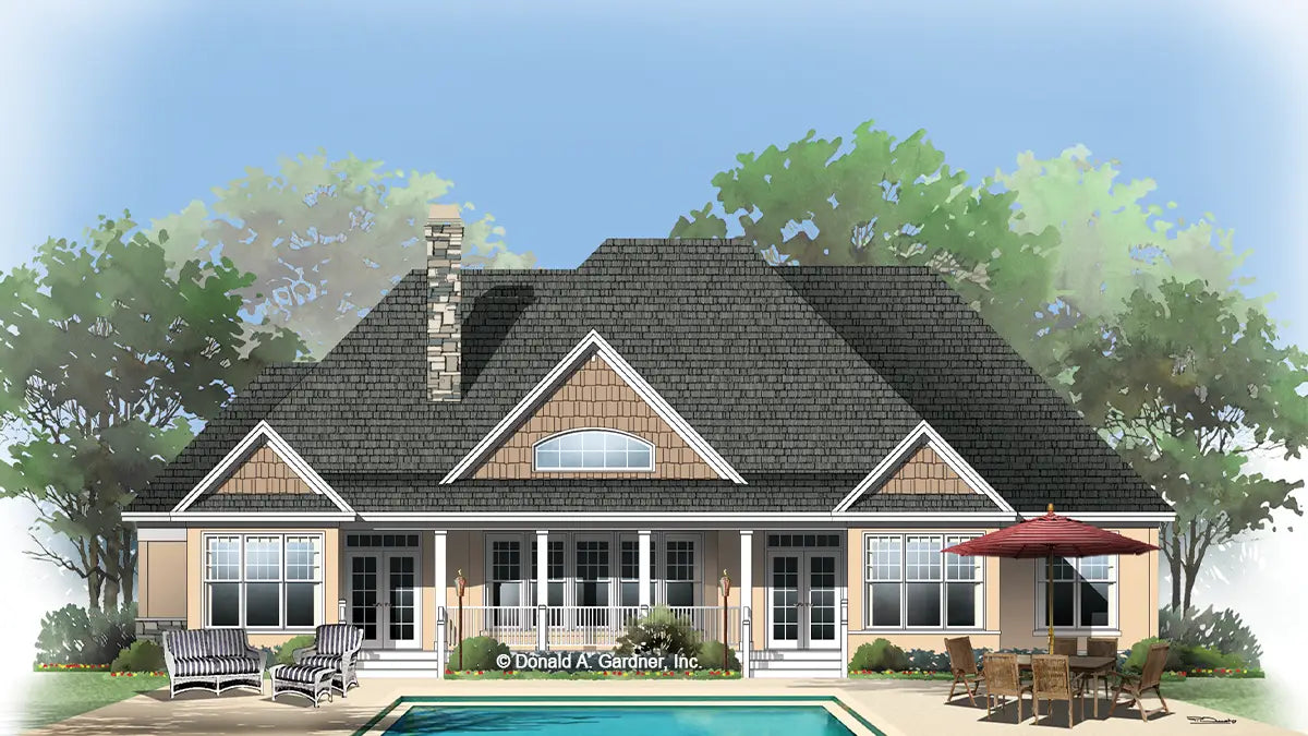 Featuring a stunning exterior of stucco, stone, and cedar shakes, this Craftsman home both blends with and takes advantage of the beauty of its natural surroundings. Designed for optimum openness, the common areas are defined by interior columns and ceiling heights. Windows extend dramatically across the back of the home for exceptional backyard views. The master suite features a tray ceiling, sitting alcove, and private bath with dual walk-in closets, garden tub, and separate shower. A bedroom/study, located adjacent to the master suite, has access to a hall bath, and a third bedroom on the opposite side of the home boasts its own private bath.