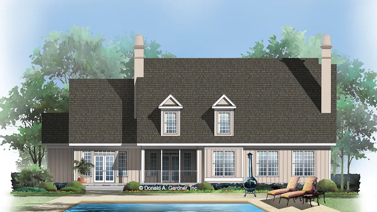 Board and batten siding combine with cedar shakes for a casual yet elegant exterior on this three-bedroom home. Carefully positioned formal and informal living spaces make entertaining easy, while a screened-in porch and patio expand options to the outdoors. Open to the kitchen and breakfast area, the family room features a tray ceiling, fireplace, and built-ins. A second fireplace with flanking built-ins can be found in the formal living room. The first-floor master suite with tray ceiling includes a lovely sitting room, access to the rear patio, a large walk-in closet, and private bath. Upstairs, two family bedrooms and a bonus room share a hall bath and walk-in linen closet.