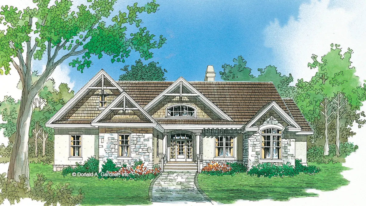 Bold, front facing gables, arched windows, and a mixture of stone, stucco, and cedar shakes create an interesting exterior for this Craftsman-style home. Inside, the open floor plan is casual with few walls dividing the common areas of the home. A cathedral ceiling enhances the great room, while a rear deck and a screened porch expand living space to the outdoors. The master bedroom is topped by a tray ceiling and features deck access, linen and walk-in closets, and an exquisite, private bath. Two family bedrooms, one with cathedral ceiling, and a hall bath are located nearby.