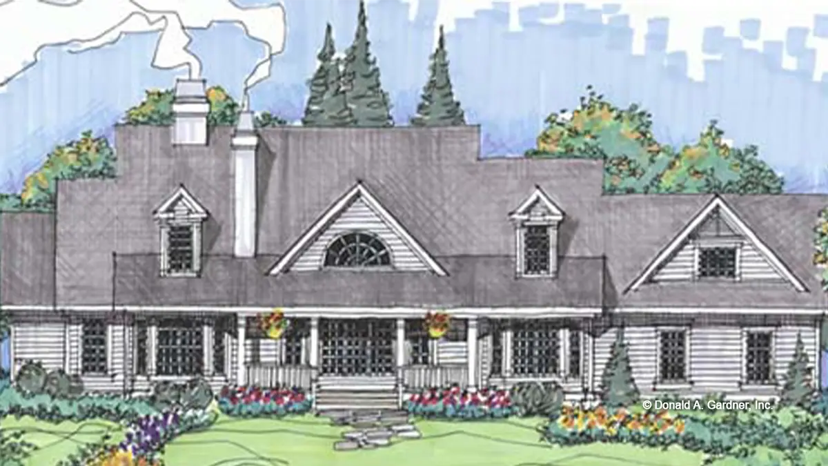 Graceful arches adorn an inviting front porch, while a lovely trio of dormers adds charm and appeal to this classic country home. A two-story ceiling tops the foyer where a dramatic, curved staircase leads to a second-floor balcony which overlooks both foyer and family room. Both the living and family rooms feature interior columns and fireplaces with flanking built-ins. The first-floor master suite is enhanced by an adjoining sitting room, a fireplace, his and her walk-in closets, and a sumptuous bath. One of the three upstairs bedrooms enjoys its own private bath and walk-in closet. A spacious bonus room, accessed from the kitchen, makes a great recreation room or playroom for the kids.