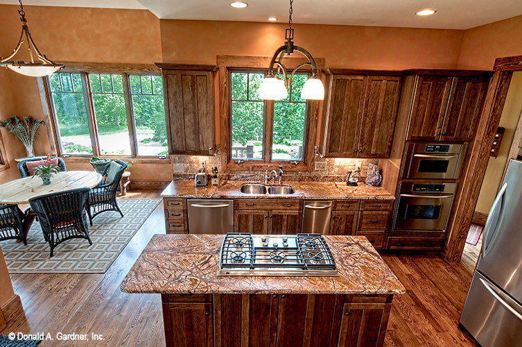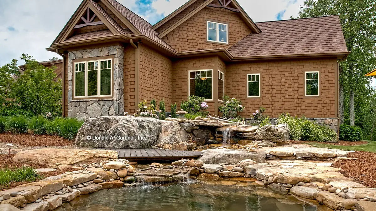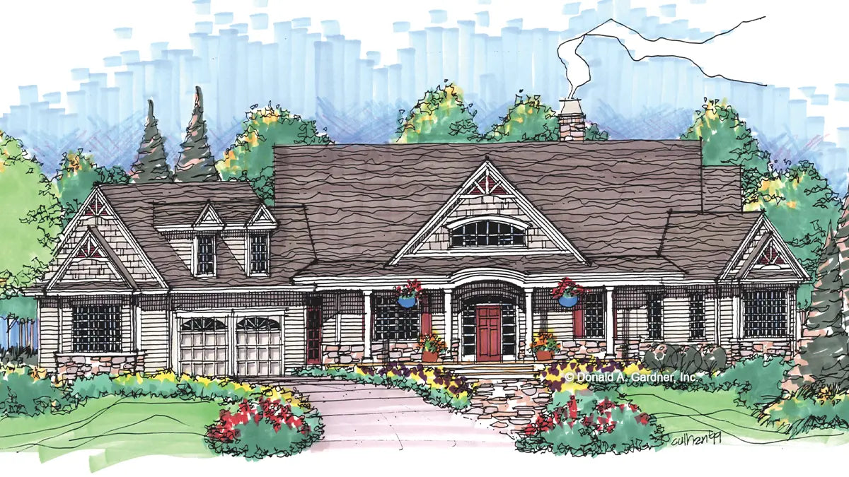 A prominent center gable with arched window accents the facade of this custom Craftsman home, which features an exterior of cedar shakes, siding and stone. An open floor plan with generously proportioned rooms contributes to the home's spacious and relaxed atmosphere. The vaulted great room boasts a rear wall of windows, a fireplace bordered by built-in cabinets, and convenient access to the kitchen. A second-floor loft overlooks the great room for added drama. The master suite is completely secluded and enjoys a cathedral ceiling, back porch access, a large walk-in closet, and a luxurious bath. The home includes three additional bedrooms and baths as well as a vaulted loft/study and bonus room.