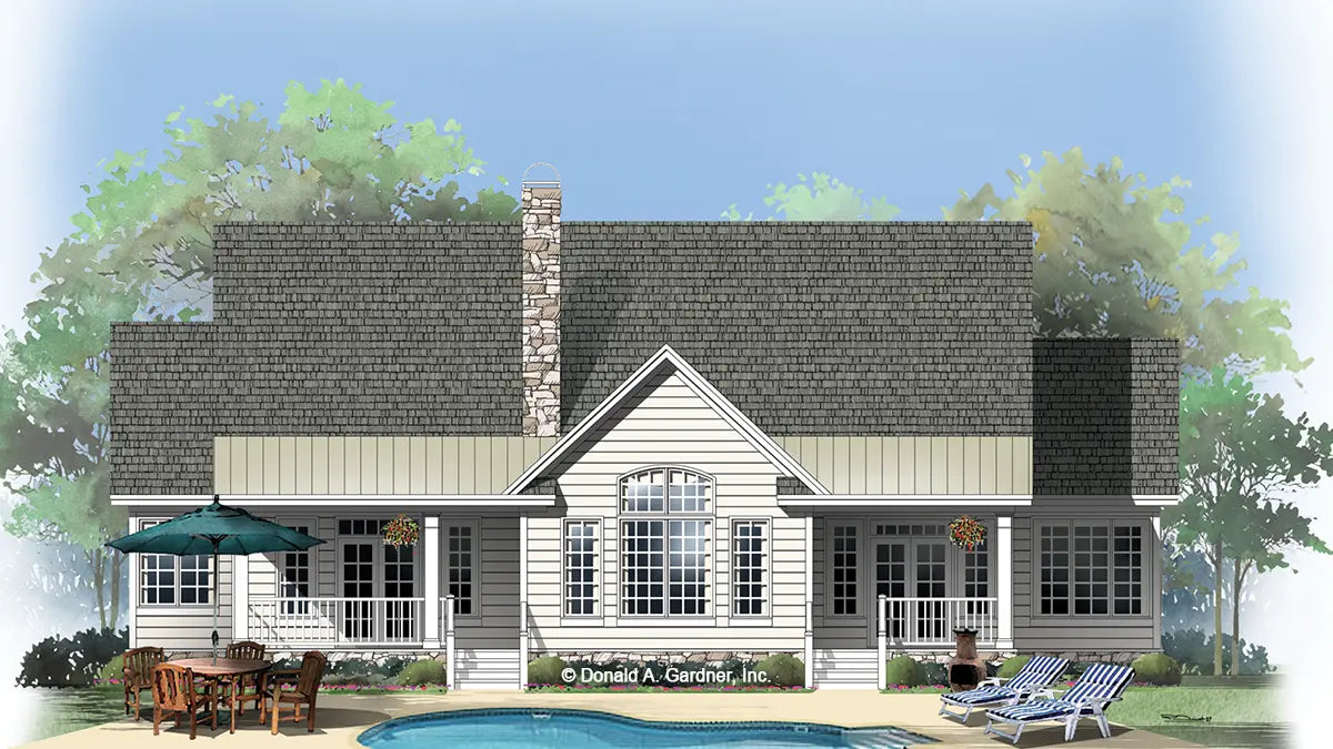 Attention to detail is found both inside and outside this beautiful one-story home. Decorative ceiling treatments and columns are used to visually expand space. The breakfast area welcomes the light from its two walls of windows, and a fireplace accents the great room, which is bordered by two private porches.