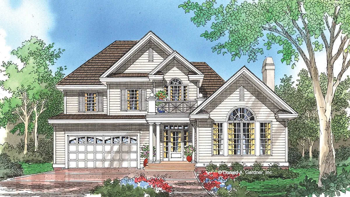 Here's an elegant facade with a family-friendly traditional design. Accented with columns and capped by a cathedral ceiling, the great room features a fireplace bordered by built-ins and a wall of windows. A roomy master suite is tucked away privately at the rear of the home, while two secondary bedrooms are located on the second floor. The bonus room and the location of the powder room and coat closet make this plan comfortable and convenient.