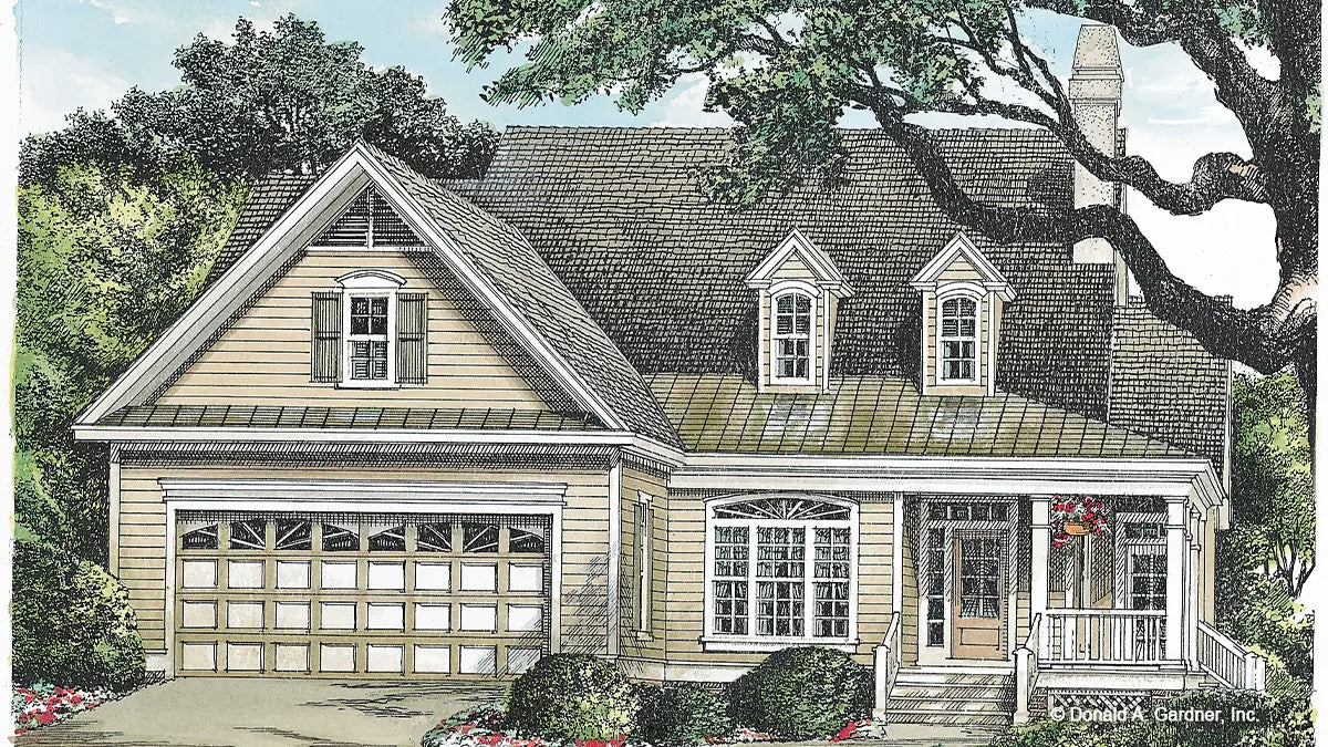 Dormers and a metal roof accents lend unique charm to the front of this efficient, 3-bedroom family home. Columns and a convenient pass-thru from the kitchen to the great room create spaciousness throughout the common living areas. A bay window adds space and light to the breakfast area, and off the kitchen is a well-located utility closet. Highlighting both the dining room and master bedroom are tray ceilings.