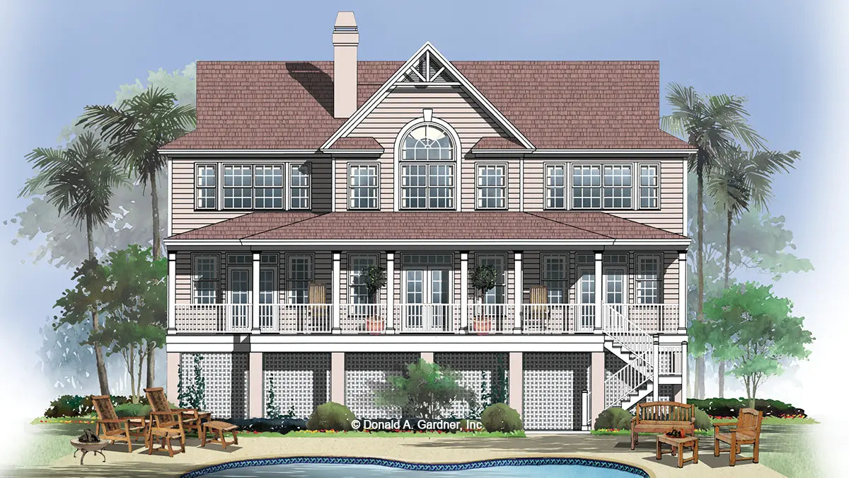 A pretty view in every direction from this spectacular beach home! Two porches greet from the front, while three sets of French doors lead to the back porch. Old World charm is incarnated into a cathedral ceiling, which runs from the rear clerestory window through the loft. Symmetrical box bay windows grace the kitchen and master bath, while columns mark entry into the dining room and great room. Enhancing the great room is a fireplace and curved second-floor balcony. Much like the master suite, both upstairs bedrooms have their own private baths- great for children or for family and friends staying over the weekend.