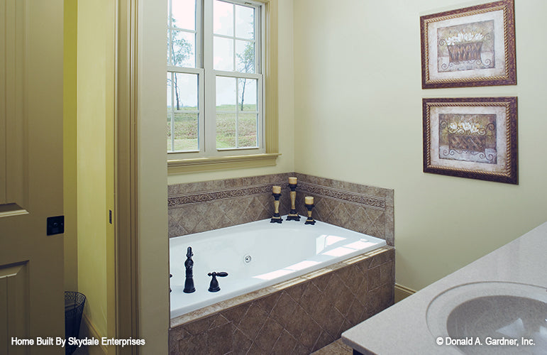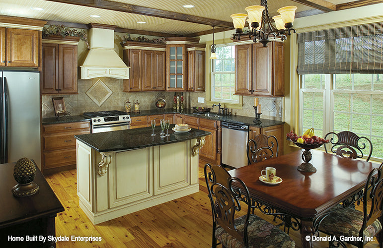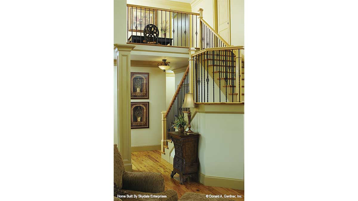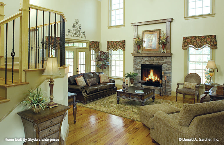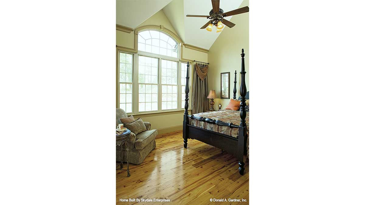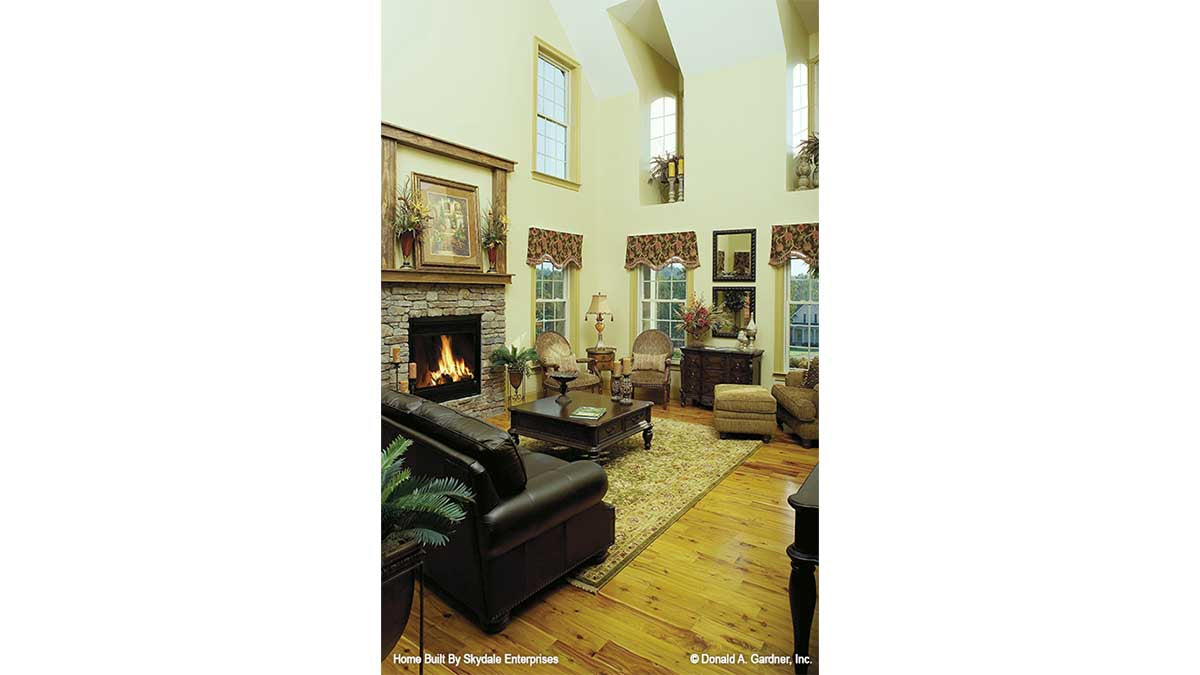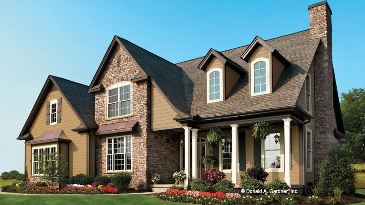 Stone and siding create a stunning exterior for this fantastic cottage plan, especially when combined with a sloped roofline and decorative wood bracket. Arches accent windows and the entryway. The loft makes a perfect sitting area, receiving a lot of light from the open, two-story great room, and a cathedral ceiling tops the master bedroom.
