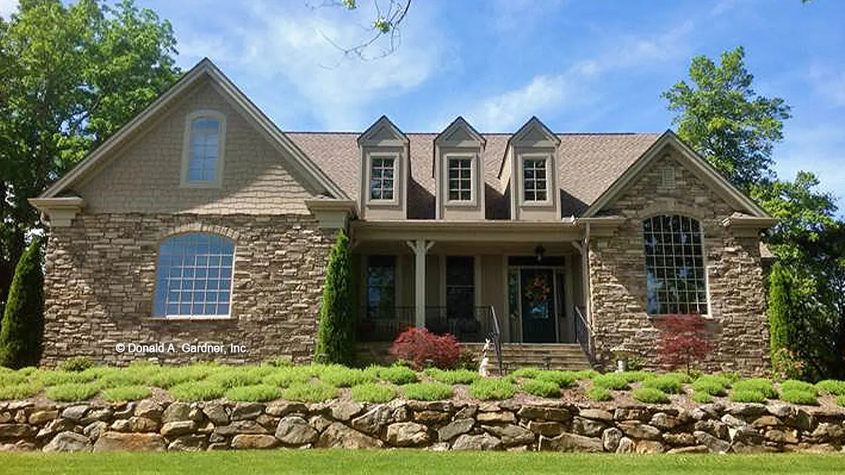 This two-story house plan combines stone, cedar shake, and siding for outstanding curb appeal. Columns in the dining room and a tray ceiling in the master bedroom add architectural interest, while built-ins, a kitchen island, and butler's pantry add convenience. A screened porch perfects outdoor entertaining, and two upstairs bonus rooms await expansion.